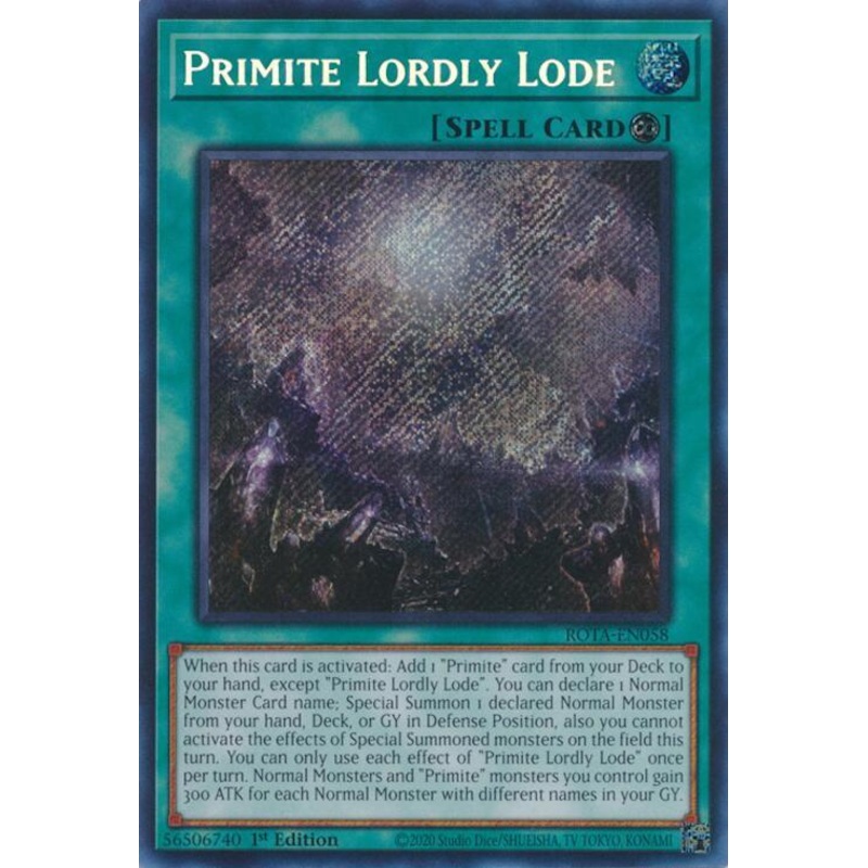 Product DetailsWhen this card is activated: Add 1 "Primite" card from your Deck to your hand, except "Primite Lordly Lode". You can declare 1 Normal Monster Card name; Special Summon 1 declared Normal Monster from your hand, Deck, or GY, also you cannot ac